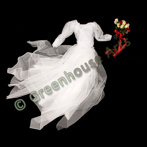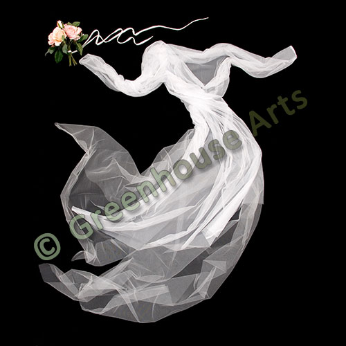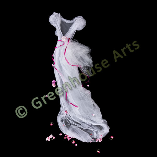 A fascination for how people perceive people inspired these photographic artworks. Portraits are concerned with defining the physical likeness of their subject. Perhaps another way to discern the subject is not necessarily through their presence but by reading ‘the trace of being’ that remains in their absence. Being a bride for a day is a momentary thing when we consider the span of a life. This series utilises the materiality of tulle, its spectre-like ability to physically suggest a bride while simultaneously considering the transient and finite nature of being. In my art kit I had acquired remnants of tulle and ribbon, so each image was created from recycled fabric, used repeatedly, to imply different human forms and then captured as a photographic image.